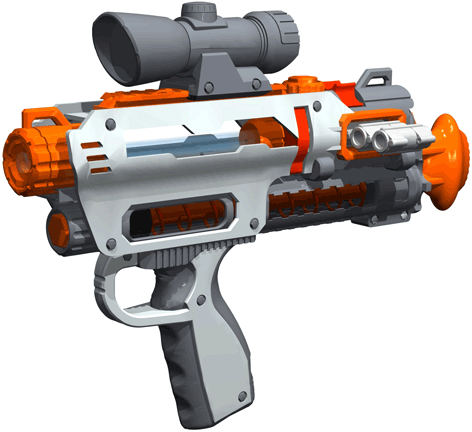 Max Force Maximizer 60 is slightly smaller in size but stills delivers a pellet to a target an amazing 60 feet away. It includes two of the eight round ammo clips and also comes with 102 pellet refills. The comfortable grip and eyesight makes this a great one handed toy weapon!
