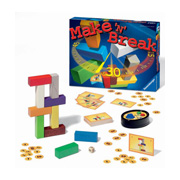 Ravensburger's Make 'n' Break (alongside the harder version, Make 'n' Break Extreme) is an excellent game that involves racing against time to make and break as many structures as possible, using the 10 differently coloured wooden bricks. You must replicate the pictures on the 80 game cards. Harder structures gain you more points but use up valuable time.