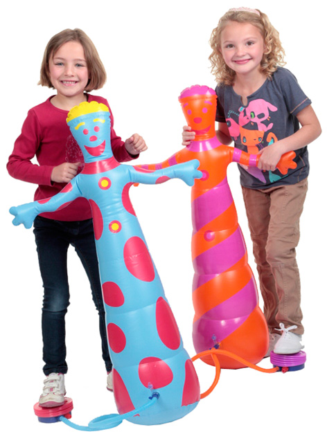 Pumpaloons is a fast-paced, hilarious and energetic game that guarantees all kind of mayhem. The aim of the game is to beat your opponents by pumping up your Pumpaloon faster than them. On the word "Go!" children must dash to their pumps and start puffing up the two clown-like wobblies (called Stripeyloon and Spottyloon) until they are standing firmly upright.