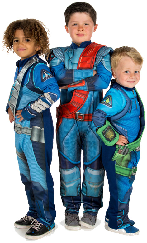 Alan is a red costume that includes realistic shoulder epaulettes and a padded chest suit for added effect. All three costumes feature an innovative sound chip which plays the memorable Thunderbirds countdown.